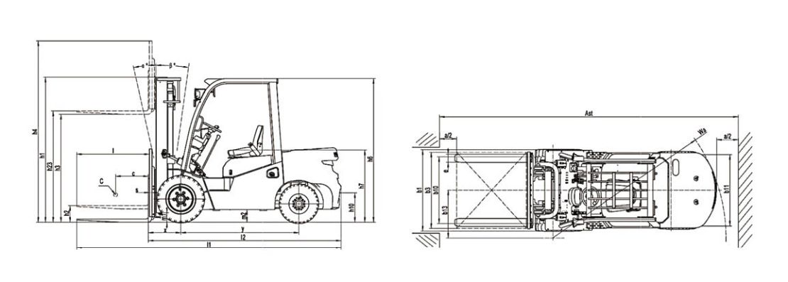 | Высота мачты при опущенных вилах | h1 (мм) | 2250 | |