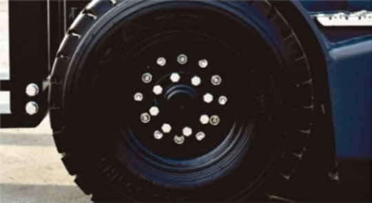 Погрузчики оснащены шинами большого диаметра, обеспечивающими лучшую эффективность при работе на открытом воздухе и более комфортное вождение. В стандартную комплектацию входят литые шины.
